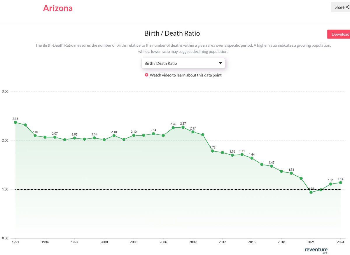 | DoubleGold Member since: Jan 26, 2023 Threads: 34 Posts: 4237 | A close-up view of the Arizona birth / death ratio, as an example: I'm not showing the beginning of the abortion wave. The woke wave (mostly castration?) could be visible. The gay marriage wave likely began after Obama's second term as he signed it into law. The C19 vaccine fertility wave is likely not visible yet but we should see another roll-over like we did during the financial crisis. In Arizona, the ratio is absolutely crashing (broke 1, four years ago). ![]() |