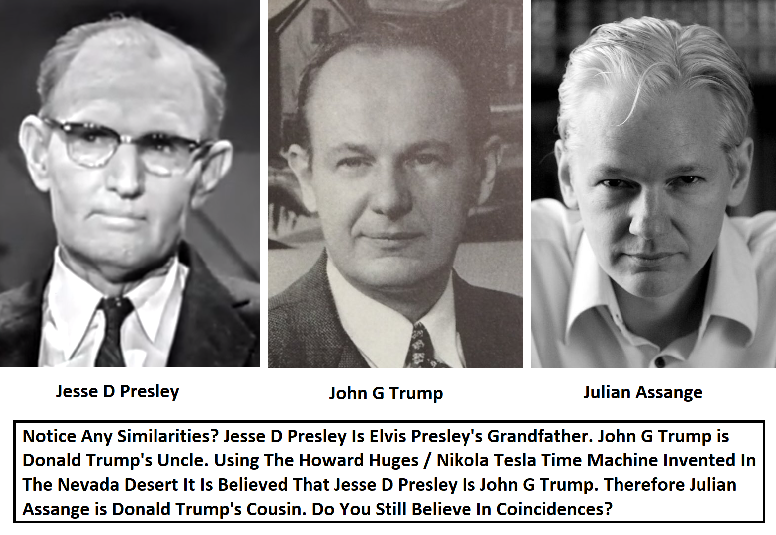 | DoubleGold Member since: Jan 26, 2023 Threads: 34 Posts: 4241 | Trump and Elvis: https://www.thegatewaypundit.com/2024/02/genius-trump-trolls-fake-news-media-posts-photo/ Jessie Presley next to John G. Trump and Julian Assange: https://static.wixstatic.com/media/829ea9_c63e9d3f2564477b974688d3c4646c86~mv2.png |