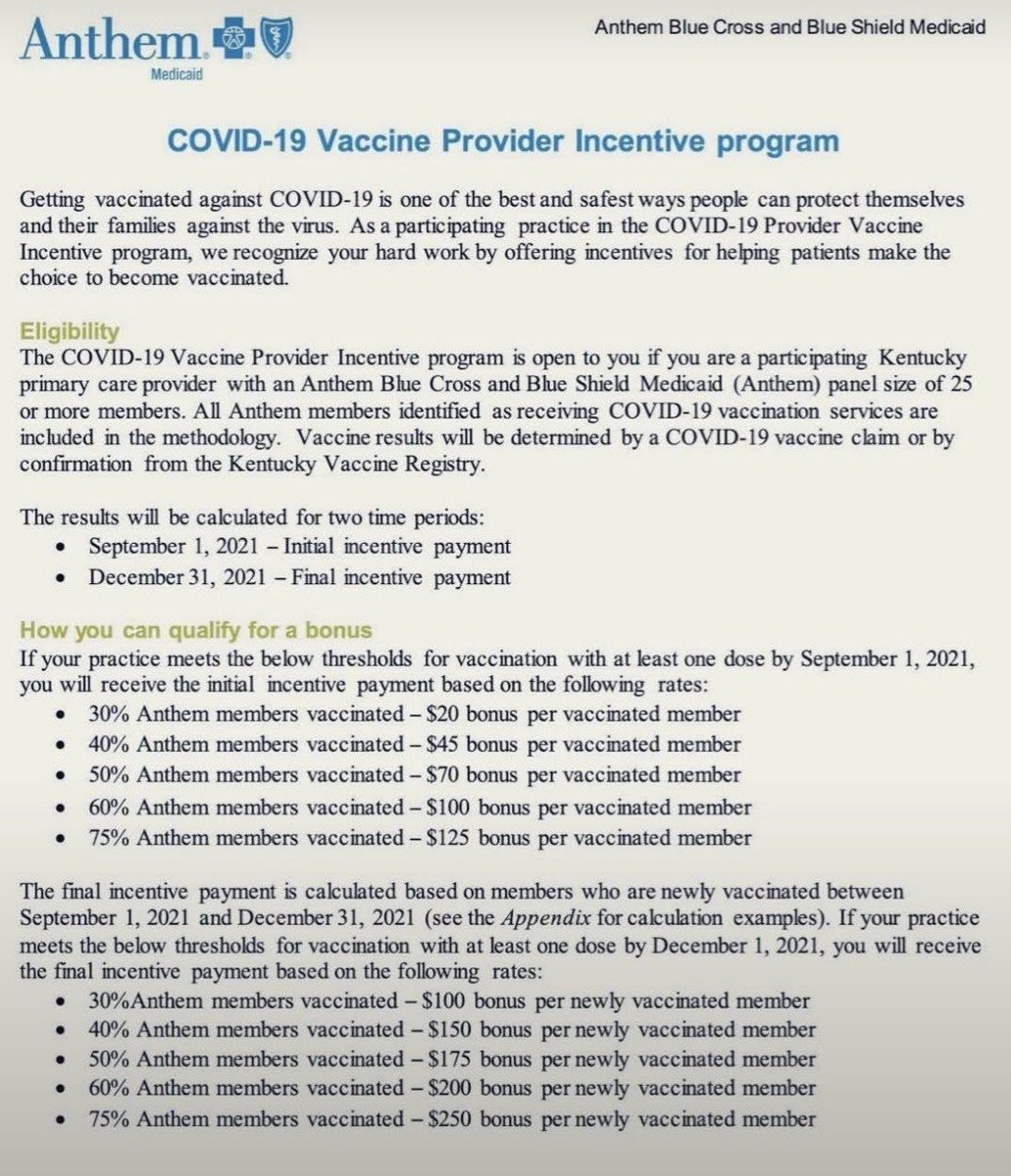 | DoubleGold Member since: Jan 26, 2023 Threads: 34 Posts: 4242 | A Kentucky insurance firm's incentives for doctors to convince their patients to accept an experimental jab: The more they convinced, the more they got paid. They should have told their patients their potential conflict of interest before the jab. Never, ever trust a doctor. It didn't used to be that way. ![]() |