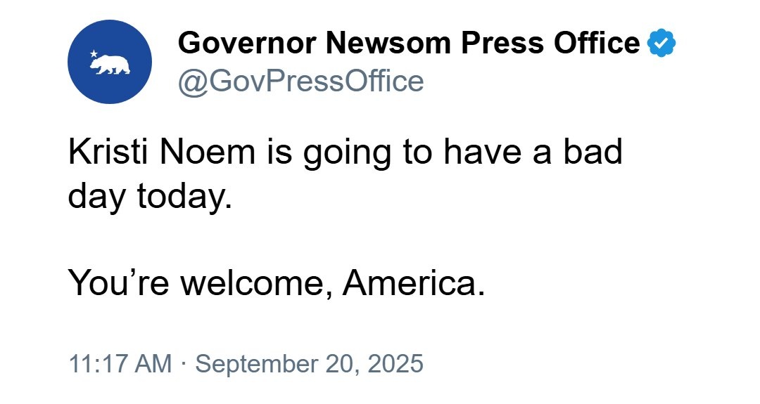 | DoubleGold Member since: Jan 26, 2023 Threads: 34 Posts: 4242 | Here we go again: I'd have Noem go in hiding for a couple of weeks to keep her safe from the death-cult. Just in case folks got new hormone meds. ![]() |