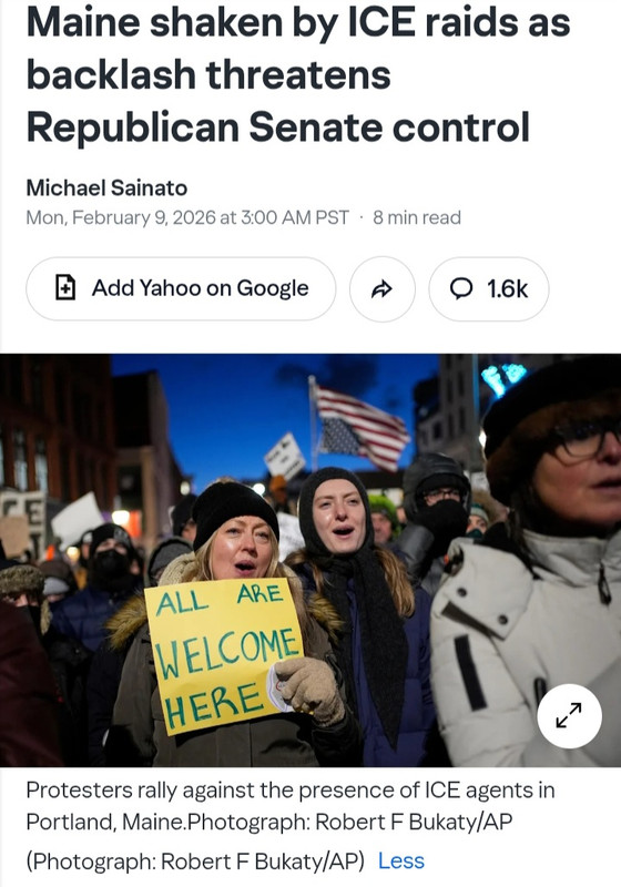 | terapined1 Member since: Nov 26, 2024 Threads: 2 Posts: 699 | The whitest state in the nation is so pissed off at ICE that Collins had to personally tell Noem to back off or she will lose her Senate seat |