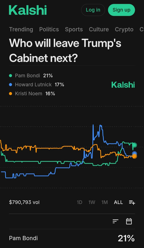 | terapined1 Member since: Nov 26, 2024 Threads: 2 Posts: 699 | Some performance by Bondi yesterday Instead of defending her policies She insulted every Dem and refused to answer questions Her odds just surged on the betting markets as the next person to leave the administration |