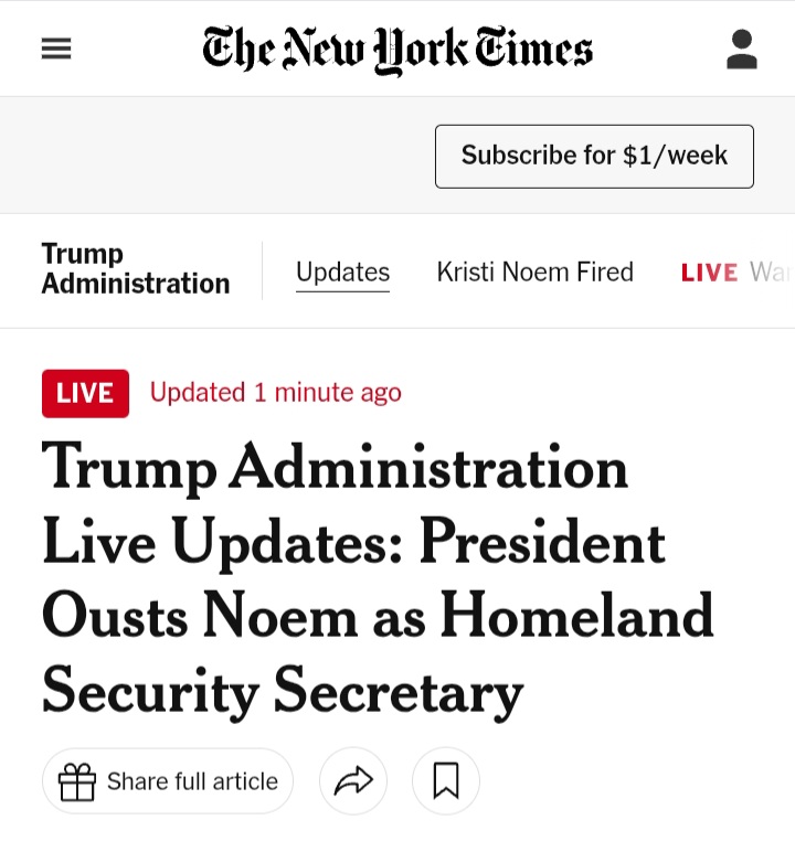 | terapined1 Member since: Nov 26, 2024 Threads: 2 Posts: 699 | Noem is out Kudos to Trump for making the right decision I have to say, at least she was respectful testifying yesterday Better then Bondi that just insulted everybody instead of answer questions like Noem did Noem was respectful but still lied describing Pretti as a domestic terrorist |