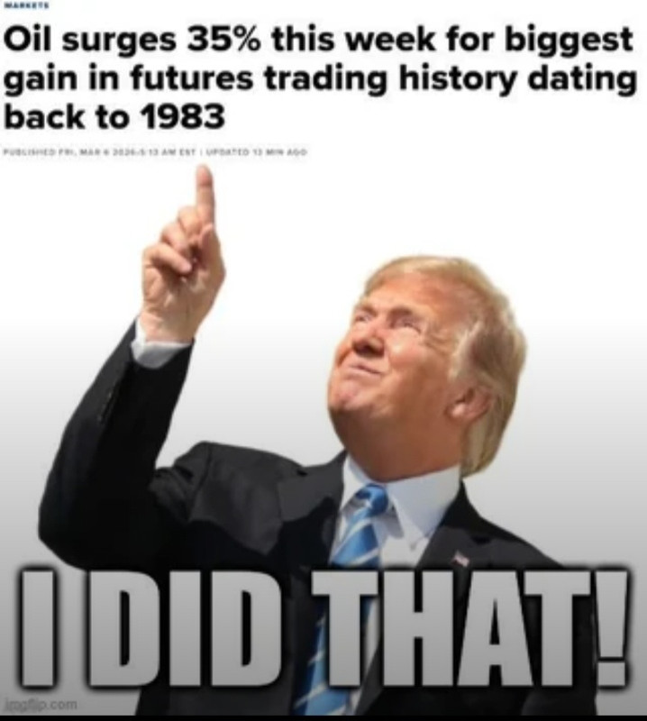 | terapined1 Member since: Nov 26, 2024 Threads: 2 Posts: 700 | I just passed a gas station today 4.35 a gallon I am stunned how fast the price has gone up after just 1 week I have to imagine the American people are getting pretty pissed off I'm pissed off and angry about this A President DIRECTLY responsible for making gas unaffordable for many Americans Just think what this will for to inflation A President DIRECTLY responsible for rising prices and a falling stock market |