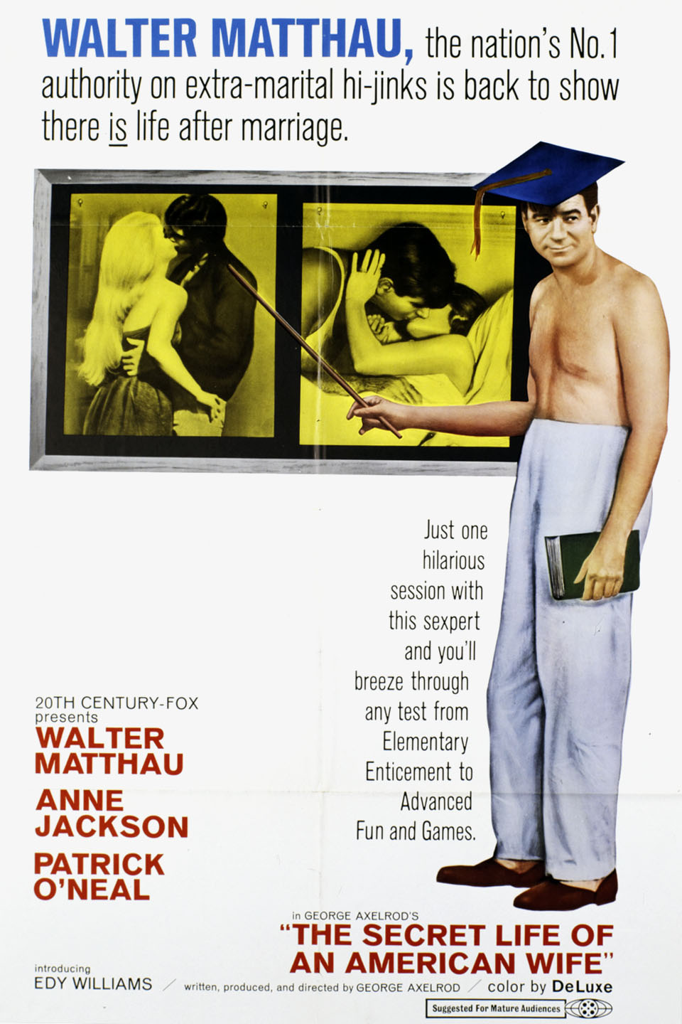 | Evenbob Member since: Oct 24, 2012 Threads: 148 Posts: 25978 | The Secret Life Of An American Wife above, the likeness of Walter Matthau is ridiculous. He was almost 50 when it was made, they have him looking 23. He never looked like that in his life. This is him in the movie, nothing like the image above. If you take a risk, you may lose. If you never take a risk, you will always lose. |